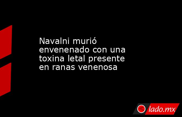 Múnich (Alemania)/ Londres, 14 feb (EFE).- El líder opositor ruso Alexei Navalni murió envenenado con una toxina letal, presente en ranas venenosas dardas de América del Sur, informaron en un comunicado conjunto el Reino Unido, Suecia, Francia, Alemania y Países Bajos.