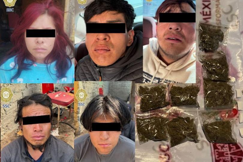 De manera simultánea, como parte del seguimiento del caso, en la calle Felipe Jardines, colonia Quiahuatla, en la alcaldía Tláhuac, se detuvo a dos hombres de 20 y 26 años en posesión de 29 envoltorios con una sustancia similar a la cocaína, 27 dosis de aparente mariguana, un teléfono celular y un chip telefónico.