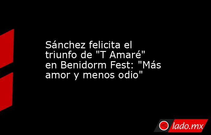 Madrid, 15 feb (EFE).- El presidente del Gobierno, Pedro Sánchez, ha felicitado a Tony Grox y LucyCalys, ganadores del primer premio del Benidorm Fest con la canción 'T Amaré', y ha dejado clara la necesidad de "Más amor y menos odio".