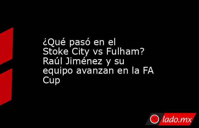 ¿Qué pasó en el Stoke City vs Fulham? Raúl Jiménez y su equipo avanzan en la FA Cup Estadio Deportes
