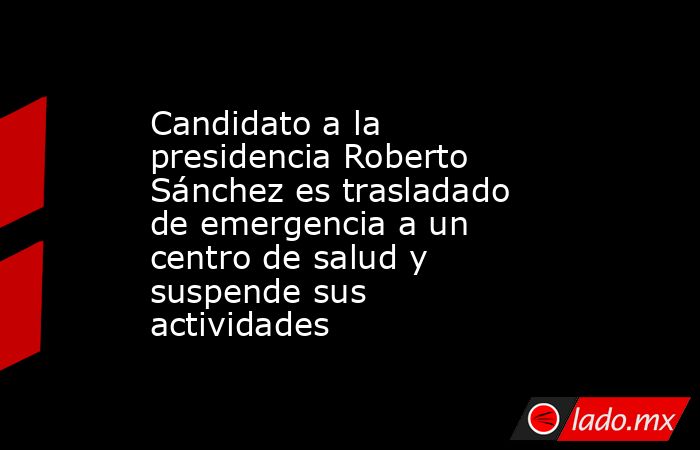 El candidato presidencial Roberto Sánchez Palomino fue trasladado de emergencia a un centro de salud en Arequipa la madrugada del 15 de febrero, lo que obligó a la suspensión de todas sus actividades programadas para la jornada. La información fue confirmada mediante un comunicado oficial difundido por Juntos Por el Perú en sus redes sociales, donde se detalló que el incidente ocurrió durante su recorrido por el sur del país como parte de la denominada “Ruta Castillista”.
