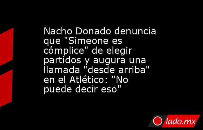 Nacho Donado denuncia que "Simeone es cómplice" de elegir partidos y augura una llamada "desde arriba" en el Atlético: "No puede decir eso"