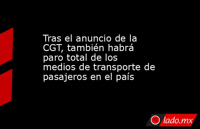 Luego del anuncio de la CGT con un paro general de 24 horas para el día que se trate la reforma laboral en Diputados, los sindicatos que nuclean a los principales medios de transporte de pasajeros de todo el país confirmaron que se sumarán a la medida de fuerza y se espera que ese día no haya colectivos, trenes, subtes ni taxis.
