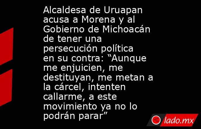 Hoy quieren enjuiciarme políticamente. Hoy quieren callar una voz, pero lo digo con toda claridad: no han enjuiciado a los verdaderos asesinos de Carlos Manzo, y eso el pueblo lo sabe, porque este movimiento nació del dolor, pero también nació de la dignidad y como bien lo decía Carlos, en este movimiento tenemos tres destinos: La muerte, la cárcel o el éxito”, dijo en un mensaje difundido en redes sociales.