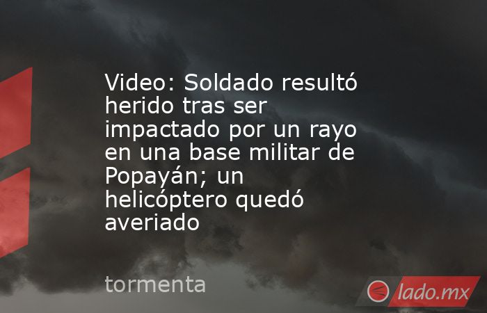 Un soldado del Ejército Nacional de Colombia resultó herido y un helicóptero UH-60 Black Hawk sufrió daños tras el impacto de un rayo en una base militar de Popayán, Cauca, durante la tarde del domingo 15 de febrero.