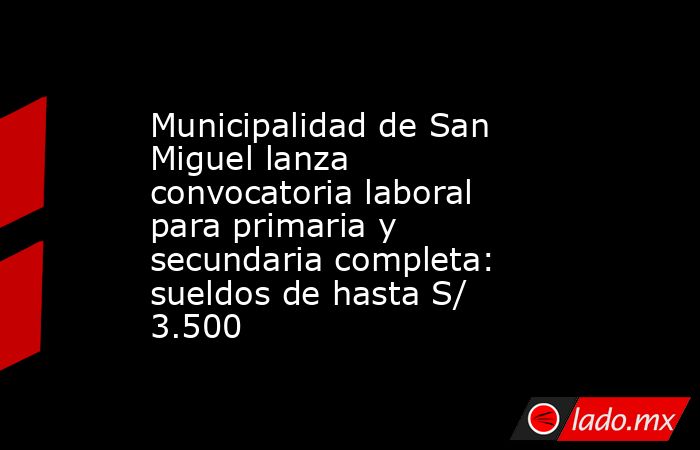 La Municipalidad de San Miguel abrió una nueva convocatoria CAS con 29 vacantes dirigidas a personas con primaria completa, secundaria completa y título universitario, ofreciendo sueldos que van desde S/ 1.200 hasta S/ 3.500. El proceso, publicado el 16 de febrero de 2026, contempla plazas operativas y técnicas en distintas áreas del municipio, todas bajo el régimen de Contrato Administrativo de Servicios.