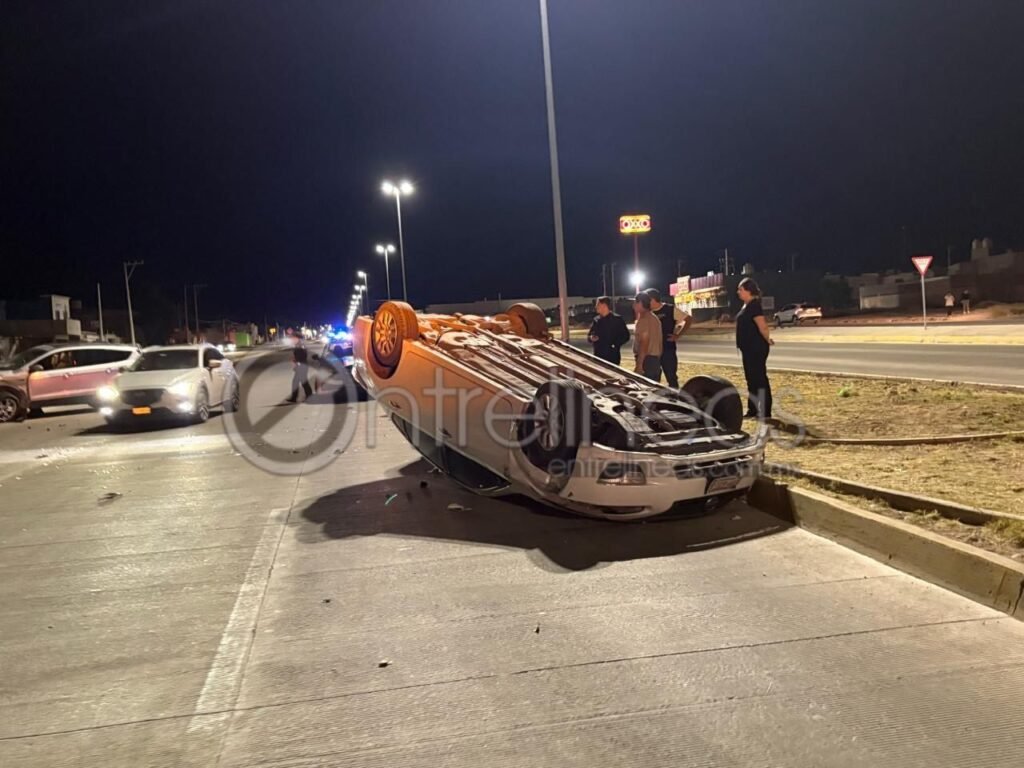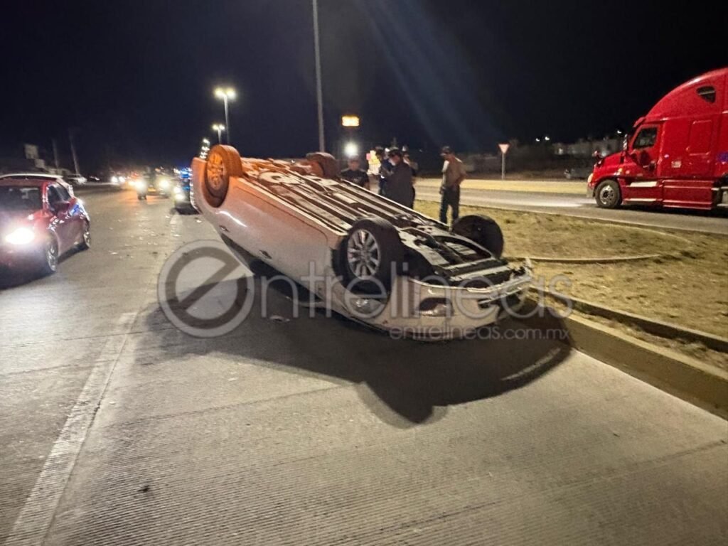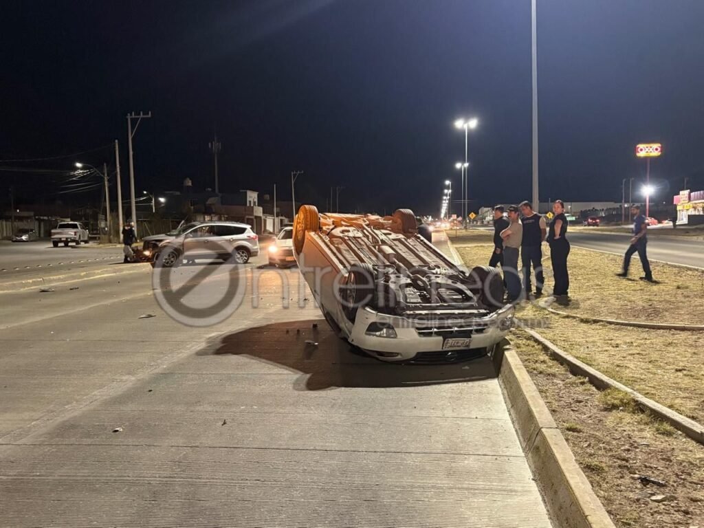 Un aparatoso choque con volcadura se registró la noche de este lunes en el cruce de las avenidas Guillermo Prieto Luján y Unidad Popular, donde una mujer resultó lesionada.