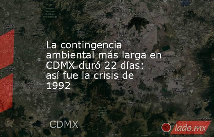 En perspectiva, la contingencia de 1992 sigue siendo el episodio más prolongado y severo del que se tiene registro en la capital mexicana. Hoy en día, los umbrales para activar una contingencia son más bajos (150 puntos IMECA para Fase 1), lo que permite prevenir daños antes de llegar a niveles críticos.
