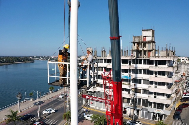Por instrucciones del presidente municipal de Tuxpan, Daniel Cortina, este lunes por la mañana se llevaron a cabo trabajos de mantenimiento en la asta bandera ubicada en la Plaza Cívica Municipal, a un costado de la Presidencia Municipal.