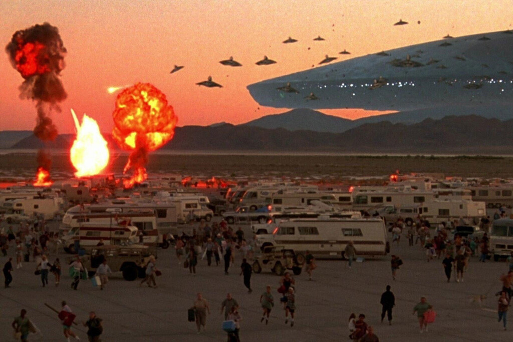 Como bien recordaréis, este taquillazo de ciencia ficción, dirigido por Roland Emmerich y protagonizado por Will Smith, narraba una historia en la que varias y colosales naves espaciales llegaban a la Tierra con muy pocas ganas de hacer amigos.