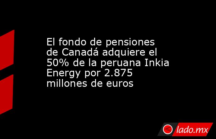 El fondo de pensiones de Canadá, Canada Pension Plan Investment Board (CPPIB), ha adquirido el 50% de la principal operadora de generación eléctrica de Perú, Inkia Energy, al fondo estadounidense I Squared Capital por 3.400 millones de dólares (2.875 millones de euros).