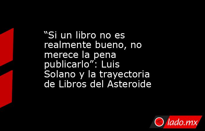 Que hay que proponer solo libros que puedan conmover al lector y cambiar su visión del mundo”, dice a MILENIO Luis Solano, director de la editorial.