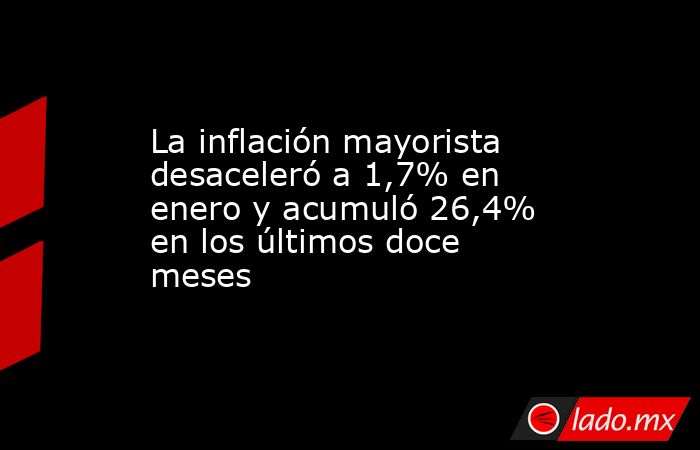 La inflación mayorista fue de 1,7% en enero de 2026, lo que implicó una desaceleración de 0,7 puntos porcentuales respecto de diciembre de 2025. En términos interanuales, la variación alcanzó el 26,4%, levemente por encima del 26,2% registrado el mes previo.