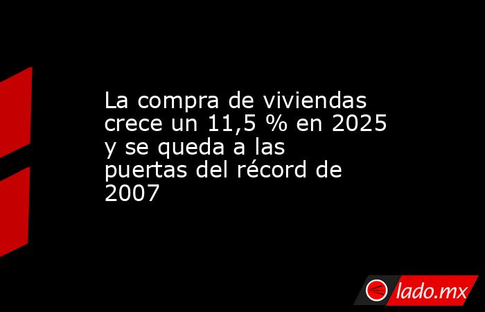 Madrid, 20 feb (EFE).- La compraventa de viviendas creció en 2025 un 11,5 % en tasa interanual y alcanzó las 714.237 unidades, la cifra más alta que se registra desde 2007, en plena burbuja inmobiliaria, según los datos publicados este viernes por el Instituto Nacional de Estadística (INE).