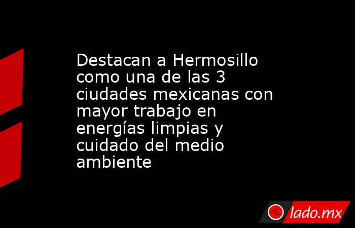 The post Destacan a Hermosillo como una de las 3 ciudades mexicanas con mayor trabajo en energías limpias y cuidado del medio ambiente appeared first on Proyecto Puente.