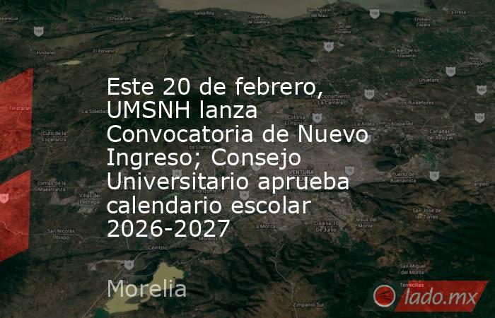 Morelia, Michoacán, a 20 de febrero de 2026.- Este viernes 20 de febrero en punto de las 18:00 horas, la Universidad Michoacana de San Nicolás de Hidalgo (UMSNH) lanzará la Convocatoria de Nuevo Ingreso, luego de que el Consejo Universitario encabezado por la rectora Yarabí Ávila González, aprobara el calendario escolar 2026-2027.