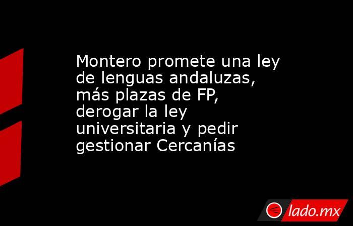 La secretaria general del PSOE andaluz y vicepresidenta primera del Gobierno de Pedro Sánchez, María Jesús Montero, ha prometido este sábado en un acto electoral en Jaén capital que, de llegar a la Presidencia de la Junta de Andalucía, impulsará una ley de lenguas andaluzas, creará más plazas de Formación Profesional (FP), derogará la recientemente aprobada en el Parlamento andaluz Ley Universitaria Para Andalucía, conocida como la LUPA, y pedir la transferencia de los Cercanías.