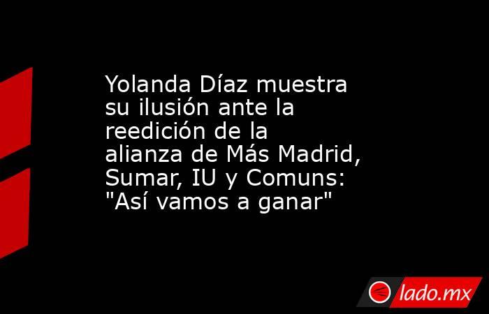 La vicepresidenta segunda y ministra de Trabajo, Yolanda Díaz, ha manifestado su ilusión por la reedición de la alianza entre Más Madrid, IU, Sumar y Comuns, y está convencida de que la izquierda alternativa volverá a ser clave para un Gobierno progresista.