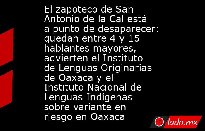 En San Antonio de la Cal, a unos minutos de la capital de Oaxaca, una lengua originaria está por desaparecer. Se trata del zapoteco local, una de las 62 variantes dialectales del zapoteco en México. Hoy sólo quedan entre 10 y 15 personas mayores que lo hablan, aunque el registro más reciente del Instituto de Lenguas Originarias de Oaxaca documentó únicamente cuatro hablantes en 2025.