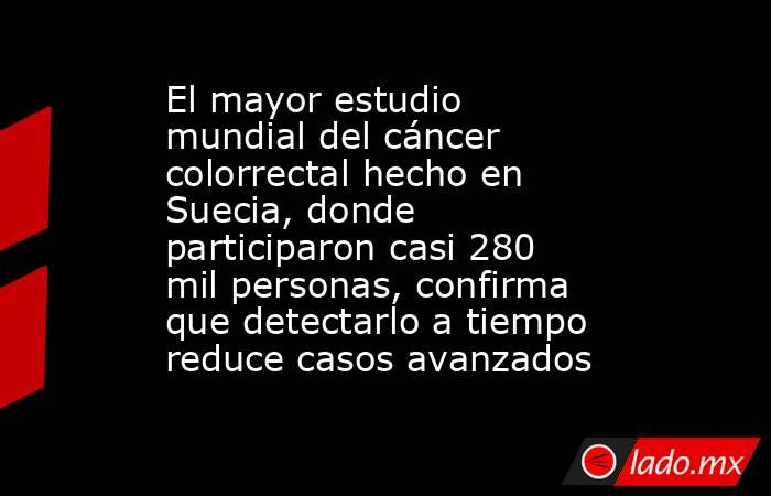 SUECIA.- Un estudio clínico aleatorizado con casi 280 mil personas confirmó que el cribado para detectar cáncer colorrectal permite identificar la enfermedad en etapas más tempranas y reducir los casos avanzados.