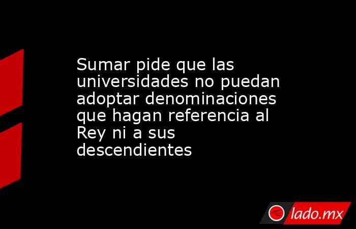 El Grupo Parlamentario Plurinacional Sumar ha registrado en el Congreso de los Diputados una enmienda al proyecto de ley orgánica por la que se modifica la ley orgánica del sistema universitario (LOSU) para que las universidades no puedan adoptar denominaciones que hagan referencia al Rey ni a sus descendientes.