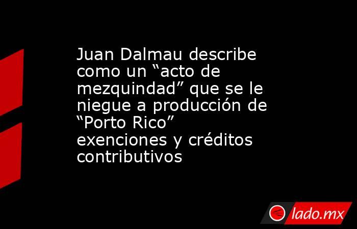 Juan Dalmau describe como un “acto de mezquindad” que se le niegue a producción de “Porto Rico” exenciones y créditos contributivos El Nuevo Día