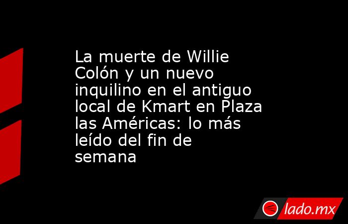 La muerte de Willie Colón y un nuevo inquilino en el antiguo local de Kmart en Plaza las Américas: lo más leído del fin de semana. Noticias en tiempo real 22 de Febrero, 2026 16:27