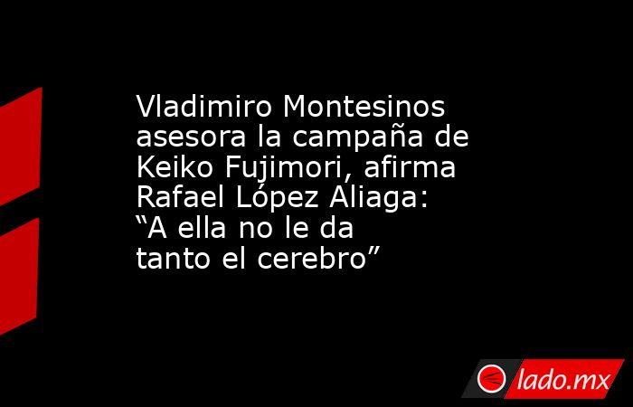 El líder de Renovación Popular, Rafael López Aliaga, sugirió este domingo que Vladimiro Montesinos, el otrora asesor y mano derecha del exdictador Alberto Fujimori (1990-2000), asesora a Keiko Fujimori, dirigente de Fuerza Popular, durante la campaña electoral, su cuarto intento para llegar a la presidencia.