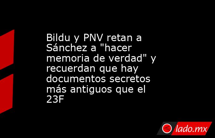 Bildu y el PNV han retado este lunes al presidente Pedro Sánchez a hacer memoria histórica "de verdad" y no sólo aprovechar el aniversario de la intentona golpista del 23 de febrero de 1981 para desclasificar documentos relativos a aquel episodio, y de hecho le recuerdan que se mantienen bajo secreto otros documentos oficiales referidos a hechos aún más antiguos.
