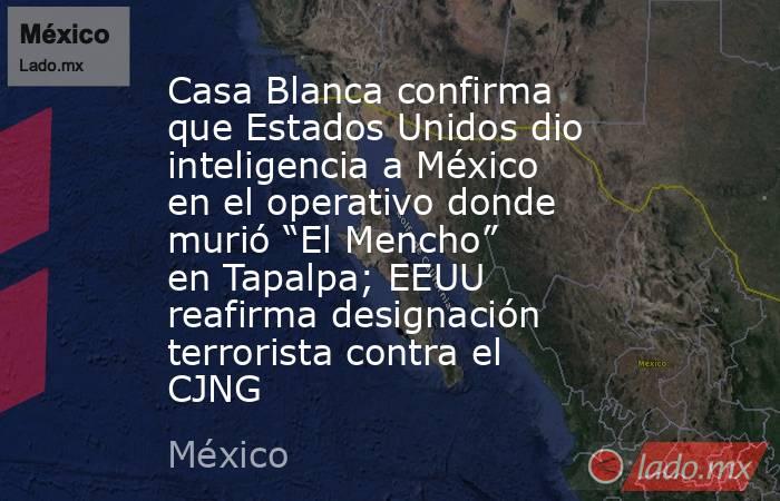 La Casa Blanca confirmó que el gobierno de Estados Unidos brindó apoyo de inteligencia al Ejército Mexicano en el operativo realizado en Tapalpa, Jalisco, donde murió Nemesio Oseguera Cervantes, conocido como “El Mencho”, líder del Cártel Jalisco Nueva Generación (CJNG).