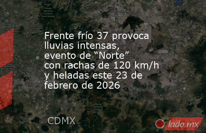 El frente frío 37 mantiene este 23 de febrero de 2026 un escenario de lluvias intensas en el sureste, evento de “Norte” con rachas de hasta 120 km/h y ambiente frío a muy frío en el centro y norte del país, de acuerdo con el Servicio Meteorológico Nacional.