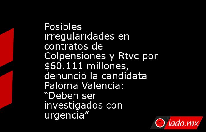 La senadora y candidata presidencial por el Centro Democrático, Paloma Valencia, denunció posibles irregularidades en contratos de Colpensiones y Rtvc por un total de $60.111 millones.