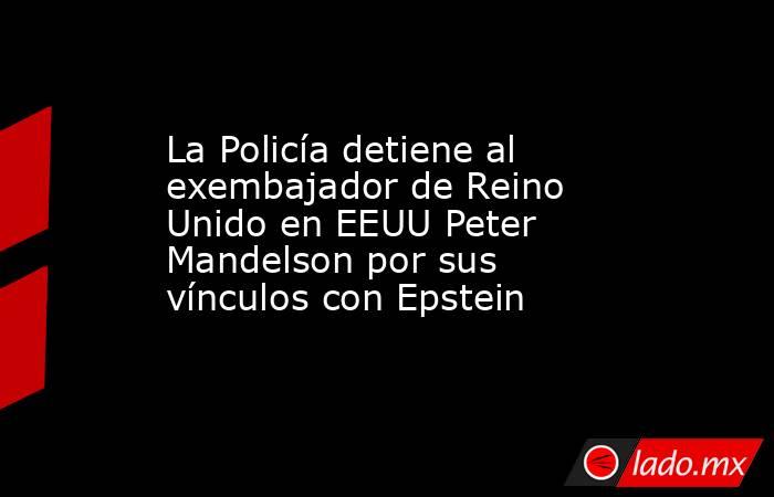 La Policía Metropolitana de Londres ha detenido este lunes al exembajador de Reino Unido en Estados Unidos Peter Mandelson por "sospechas de mala conducta en un cargo público" debido a sus vínculos con el delincuente sexual Jeffrey Epstein.