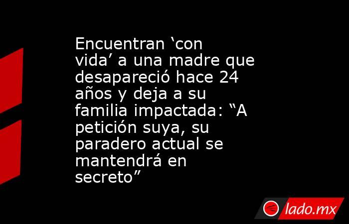 Hasta el pasado 19 de febrero, cuando los detectives recibieron nueva información y contactaron presencialmente con la mujer, de ahora 62 años, la familia no sabía qué había ocurrido con ella. No obstante, “a petición suya, su paradero actual se mantendrá en secreto”, tal y como ha detallado la oficina del sheriff, desde donde también remitieron esta información a sus familiares.