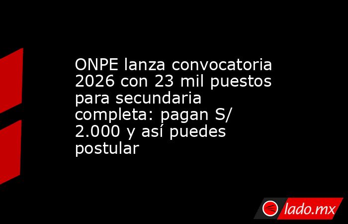 La Oficina Nacional de Procesos Electorales (ONPE) lanzó una de las convocatorias más grandes de cara a las Elecciones 2026. Se trata de 23.192 vacantes para Coordinadores de Mesa, bajo la modalidad de locación de servicios y con una remuneración de S/ 2.000 soles. La oferta ya se encuentra vigente y estará disponible, según cada Oficina Descentralizada de Procesos Electorales (ODPE), hasta el 28 de febrero de 2026 o hasta completar las plazas.