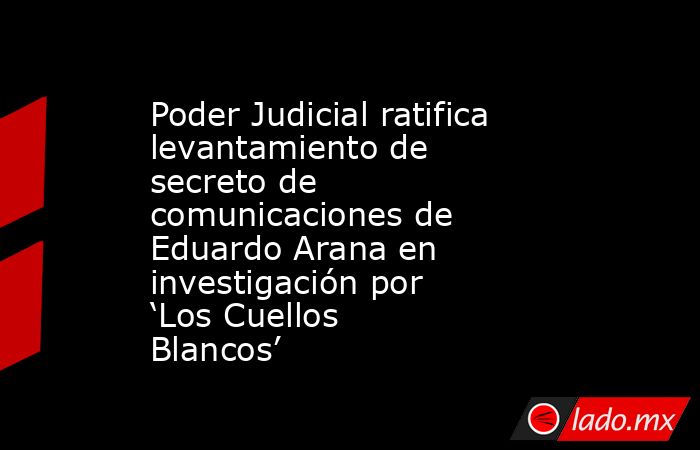 La Corte Suprema de Justicia ratificó la decisión de levantar el secreto de las comunicaciones del exjefe de Gabinete, Eduardo Arana, como parte de la investigación que se le sigue por su presunta vinculación con "Los Cuellos Blancos del Puerto’, como se denominó a la mafia formada por jueces y fiscales que traficaban sus sentencias por favores políticos o dinero.