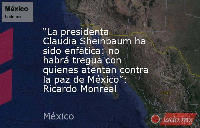 El cargo “La presidenta Claudia Sheinbaum ha sido enfática: no habrá tregua con quienes atentan contra la paz de México”: Ricardo Monreal apareció primero en El Arsenal.