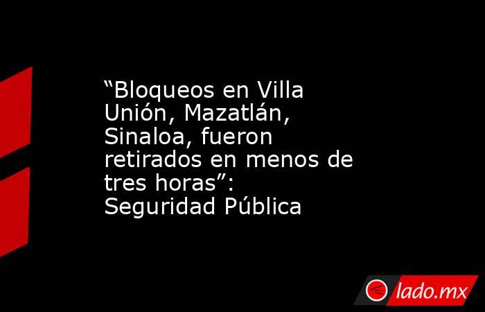 Mazatlán, Sinaloa. _ El secretario de Seguridad Pública Municipal, Jaime Othoniel Barrón, informó que los bloqueos registrados el domingo 22 de febrero en la sindicatura de Villa Unión, Mazatlán, Sinaloa, fueron atendidos de manera inmediata mediante coordinación interinstitucional, retirados en un lapso aproximado de dos a tres horas y que actualmente la situación se mantiene sin novedad.