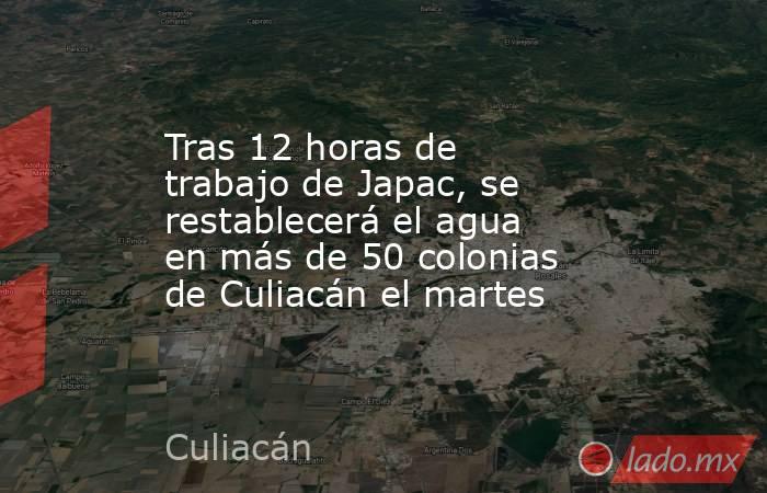 Culiacán, Sinaloa.- El servicio de agua potable en las más de 50 colonias afectadas de Culiacán este lunes quedará restablecida el martes 24 de febrero de 2026, informó la Junta de Agua Potable y Alcantarillado Municipal (Japac).