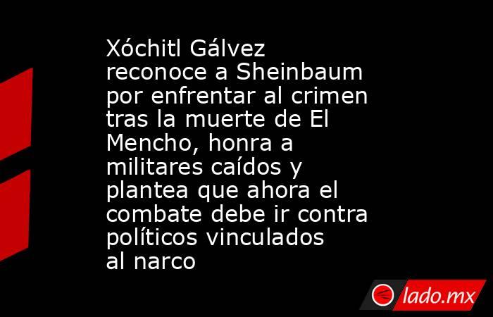 Xóchitl Gálvez reconoció a Claudia Sheinbaum por enfrentar al crimen organizado tras la muerte de El Mencho, ocurrida el 22 de febrero en Tapalpa, Jalisco, durante un operativo federal. Destacó a las Fuerzas Armadas, respaldó a Omar García Harfuch y llamó a la unidad nacional.
