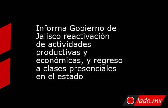 El cargo Informa Gobierno de Jalisco reactivación de actividades productivas y económicas, y regreso a clases presenciales en el estado apareció primero en El Arsenal.