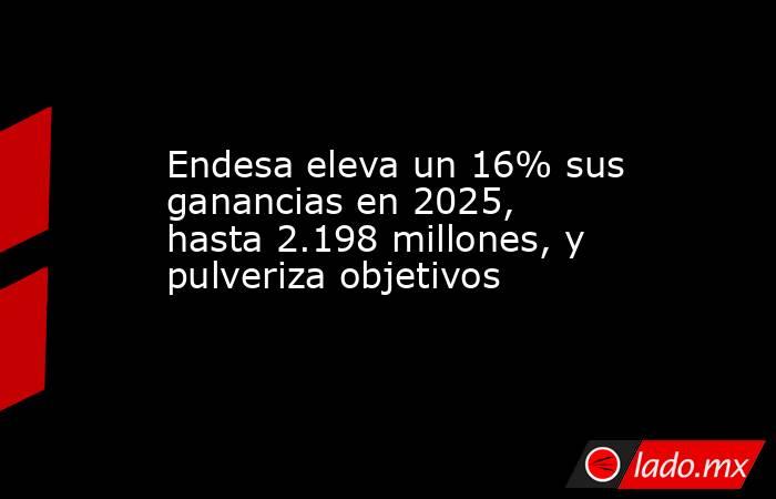 Endesa obtuvo un beneficio neto de 2.198 millones de euros en 2025, lo que representa un incremento del 16,4% con respecto a los 1.888 millones de euros del ejercicio anterior, informó la compañía, que pulveriza así los objetivos que se había marcado para el año y en los que apuntaba a unas ganancias de unos 2.000 millones de euros.