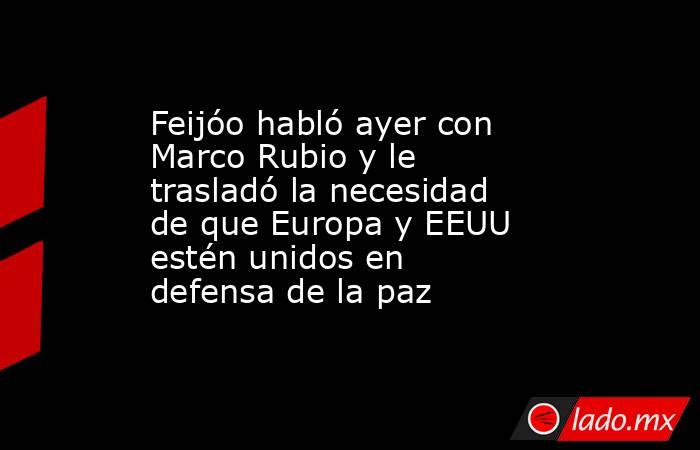 El presidente del Partido Popular, Alberto Núñez Feijóo, habló ayer con el secretario de Estado de los Estados Unidos, Marco Rubio, con quien realizó un repaso de las relaciones bilaterales entre España y el país norteamericano. El líder del PP se comprometió, además, a priorizar el vínculo trasatlántico y, al hilo del cuarto aniversario de la guerra de Ucrania, le manifestó la necesidad de que Europa y EEUU mantengan una "posición unida" en defensa de la paz y la seguridad del continente europeo, según informan fuentes del PP.