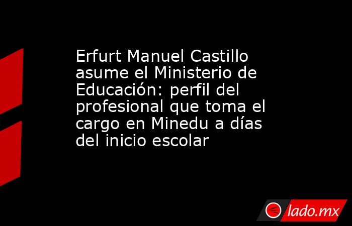 Erfurt Manuel Castillo Vera asumió el Ministerio de Educación en un momento decisivo: días antes del inicio del año escolar y durante la declaración de estado de emergencia para varias regiones debido a intensas lluvias que podrían afectar la normalidad de las clases en numerosos colegios del país.