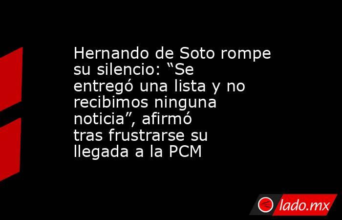 El economista Hernando de Soto reapareció en escena pública tras horas de silencio y versiones cruzadas sobre su posible llegada a la Presidencia del Consejo de Ministros. Lo hizo con un relato detallado de reuniones, listas entregadas y conversaciones que, según su versión, quedaron sin respuesta. En su exposición, describió una secuencia que empezó con un ofrecimiento directo del jefe de Estado y terminó con la designación de otro gabinete sin comunicación previa.