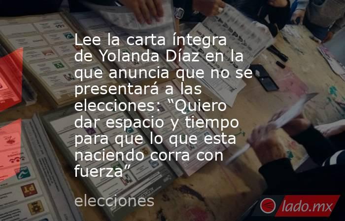 Cuando empecé mi desempeño como ministra lo hice con un objetivo en la cabeza, con un horizonte claro: servir a las trabajadoras y los trabajadores de mi país. Cada vez que he sentido esa fuerza desfallecer, cada momento de duda, cada conflicto, ha sido la brújula de los trabajadores y las trabajadoras la que me ha indicado el camino. Siempre tuve muchas reticencias ante la idea de ser candidata. La política es dura, especialmente para las mujeres, pero no me arrepiento de haber dado el paso. Miro atrás y estoy orgullosa de todo lo que hemos conseguido de forma colectiva y trabajando siempre para mejorar la vida de la gente. Voy a seguir haciéndolo, pero hoy quiero anunciaros que no seré candidata a las próximas elecciones generales de 2027. Es una decisión muy meditada y que he comunicado a mis seres queridos, al conjunto de mi espacio político y al presidente del Gobierno. Di el paso para encabezar Sumar en 2023 pensando en el enorme abrazo de los trabajadores y trabajadoras de nuestro país. Dijimos entonces que sin Sumar no habría gobierno de coalición y logramos revalidar un gobierno que todas las encuestas daban por perdido.