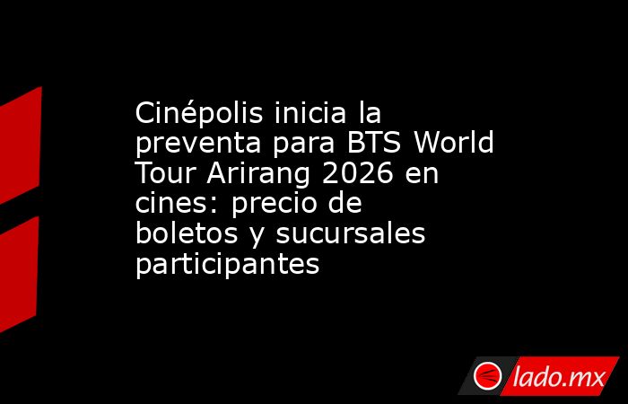 La experiencia de ver a BTS en vivo tendrá una nueva modalidad para el público mexicano. La cadena Cinépolis abrió la preventa para funciones especiales que transmitirán en pantalla grande dos conciertos de la gira BTS World Tour Arirang 2026. El anuncio confirma que se trata de una transmisión internacional en vivo, con funciones simultáneas en distintas ciudades del mundo.