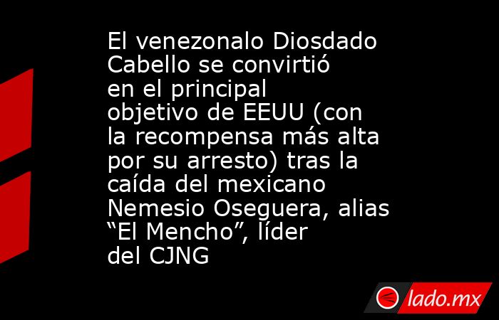 ¡BOOM! Diosdado Cabello está ARDIENDO en tendencias porque las redes lo gritan sin parar: tras la muerte de El Mencho (abatido, con recompensa de $15M), ahora Diosdado es el #1 con la MAYOR recompensa activa por narcoterrorismo en América: $25 MILLONES de la DEA y EE.UU. pic.twitter.com/K2Xaydz43g