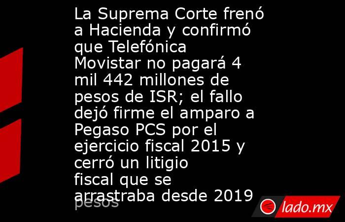 La Suprema Corte de Justicia de la Nación (SCJN) confirmó que la Secretaría de Hacienda y Crédito Público (SHCP) no podrá impugnar el amparo que benefició a Telefónica Movistar, por lo que la empresa no pagará 4 mil 442 millones de pesos por concepto de Impuesto Sobre la Renta (ISR) correspondiente al ejercicio fiscal 2015.