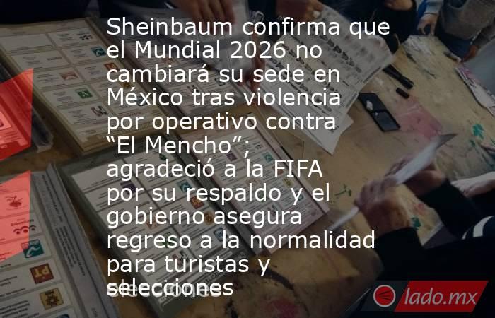 CIUDAD DE MÉXICO.- La presidenta Claudia Sheinbaum aseguró que turistas y selecciones nacionales pueden viajar a México sin preocupaciones tras los hechos de violencia derivados del operativo contra Nemesio Oseguera, conocido como “El Mencho”. La mandataria afirmó que el país mantiene su calendario rumbo al Mundial y que la sede mundialista no está en riesgo.